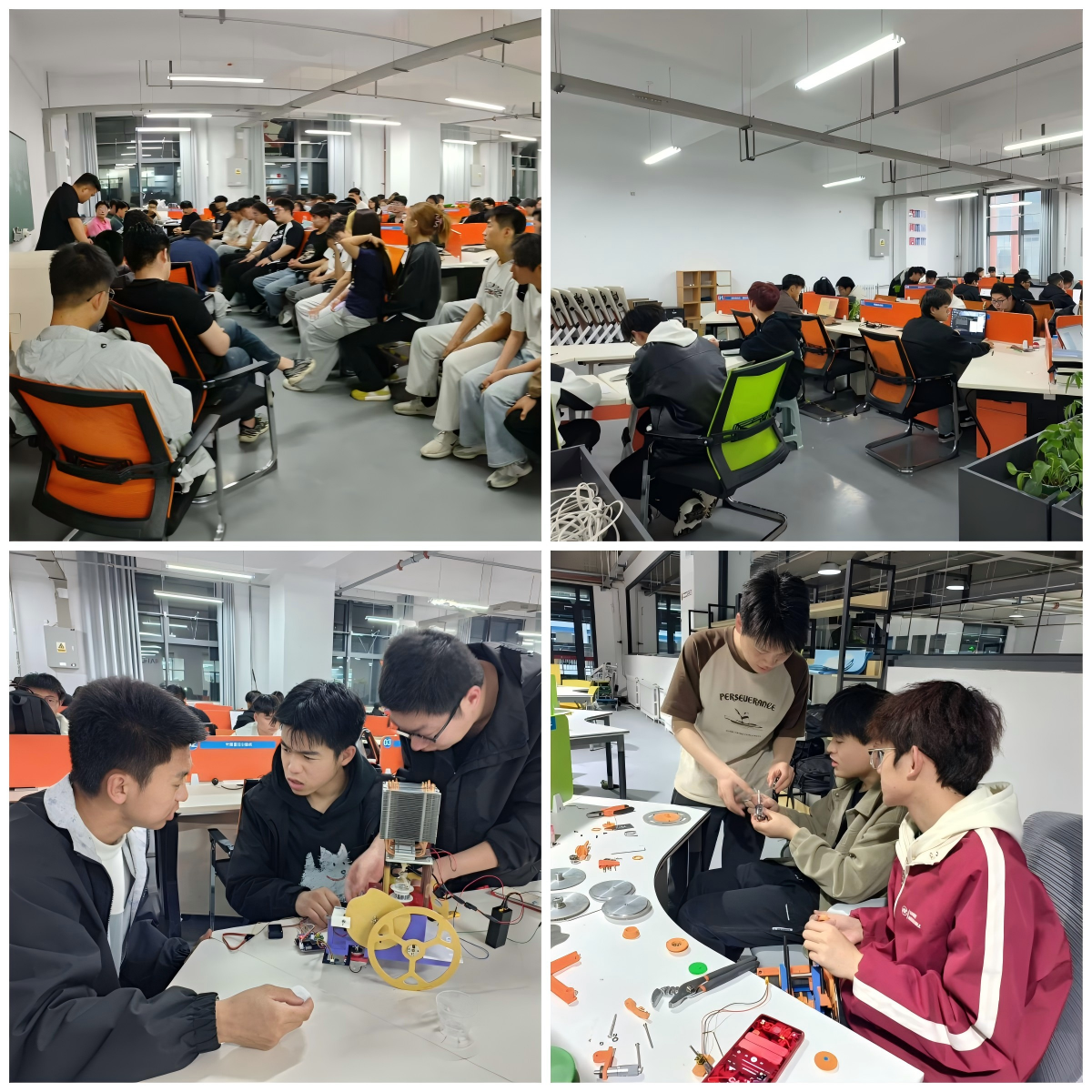 本次培训围绕大赛“新能源车”、“智能+”等重点赛道展开,内容涵盖结构设计、程序控制及智能系统调试等关键环节。指导教师结合往年赛题,从方案构思、技术实现到现场调试进行了全程讲解与实操训练。参训学生分组协作,积极研讨,在教师指导下不断完善作品设计与功能实现,有效提升了创新设计与工程应用能力。