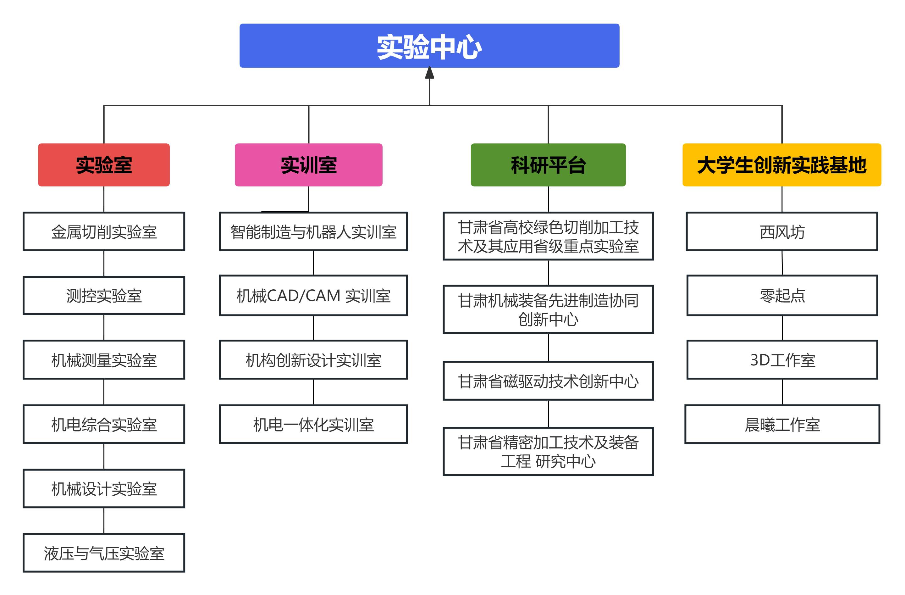 机电工程学院实验中心是大学生工程实践创新能力培养的重要基地,也是相关专业师生进行科学研究的重要场所。中心立足于本科实践教学,服务于科学研究,以“培养新时代工程应用型人才”为目标,通过对实验教学手段、方法、内容、体系等诸多方面不断探索与改革,已建成6个实验室:金属切削实验室、测控实验室、机械测量实验室;机电综合实验室、机械设计实验室、液压与气压实验室,4个实训室:智能制造与机器人实训室、机械CAD/CAM实训室、机构创新设计实训室、机电一体化实训室,4个省级科研平台:甘肃省高校绿色切削加工技术及其应用省级重点实验室、甘肃机械装备先进制造协同创新中心、甘肃省磁驱动技术创新中心、甘肃省精密加工技术及装备工程研究中心,4.大学生创新实践基地:西风坊、零起点、3D工作室和晨曦工作室。