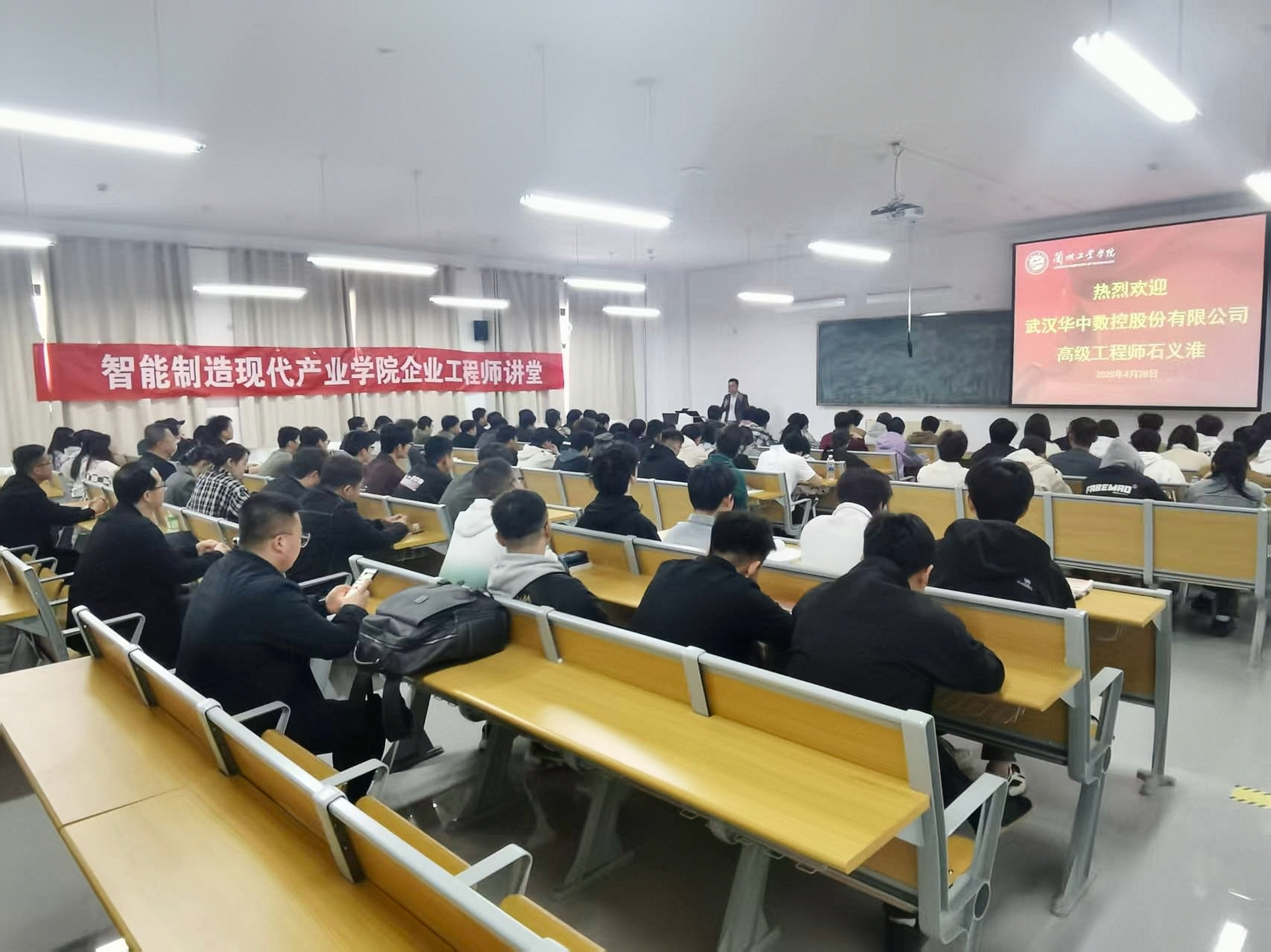 4月28日上午,我院在公共教学楼D206举办“智能制造现代产业学院企业工程师讲堂”活动。本次活动特邀武汉华中数控股份有限公司高级工程师石义淮担任主讲,学院院长林小军、副院长梁泽芬、智能制造专业教师参加活动。