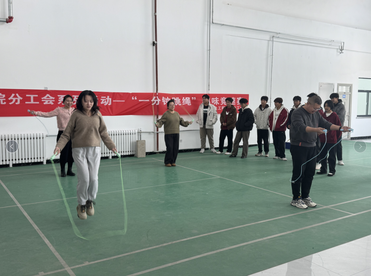 为了丰富教职工业余生活,增强身体素质,本着“友谊第一,比赛第二”的原则,12月12日机电工程学院分工会联合机关党委分工会举办的“一分钟跳绳”竞速赛在热烈的氛围中圆满落幕,本次活动吸引了众多职工踊跃参与,现场气氛高涨。