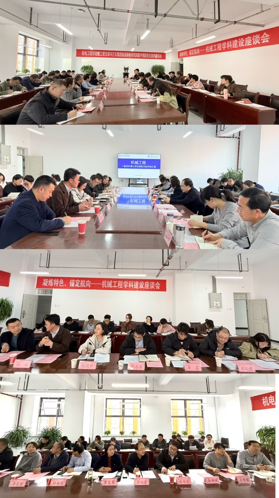 座谈会上,院长罗文翠教授详细介绍了机械工程学科在师资力量、教学资源、科研成果等方面的发展现状。魏海涛主任介绍了兰石研究院数近年来的主要研究方向,展示了具有一批代表性的成果和案例,强调了企业与高校紧密合作对于科研成果转化的积极作用,并且提出了未来双方可能的合作方向和模式。兰州理工大学权辉教授结合自身丰富的教学与科研经历,从学科发展规划、人才培养模式、科研团队建设等多个角度提供了学科建设思路和经验。窦建明博士分享了兰州交通大学机械工程一流学科的建设经验,介绍了凝炼学科方向的经验和做法。各位教师为机械工程学科的建设与发展积极建言献策,提出了一系列建设性的意见和做法。