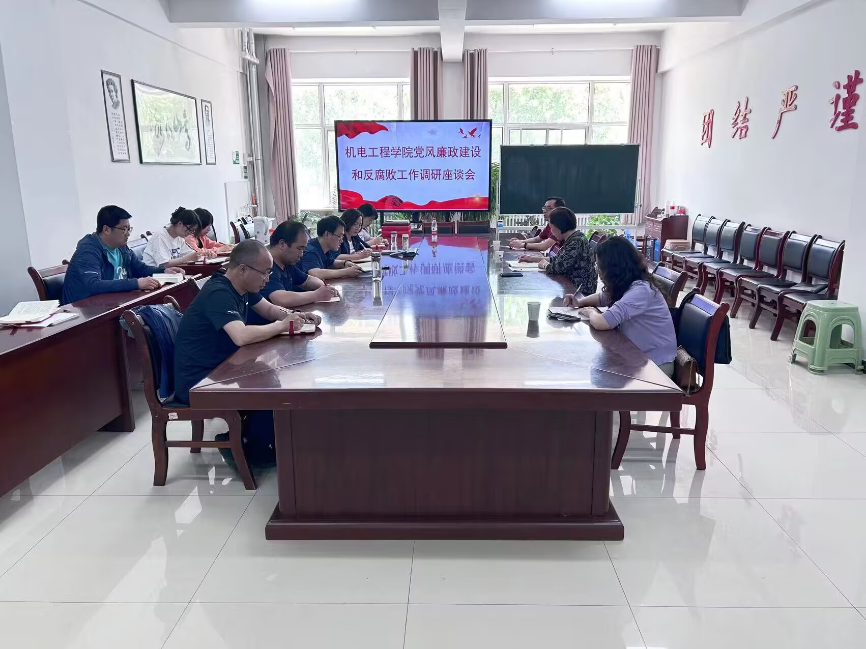 5月29日,校纪委书记、监察专员常正霞一行三人到机电工程学院调研党风廉政建设和反腐败工作。学院领导班子成员、各支部书记参加。