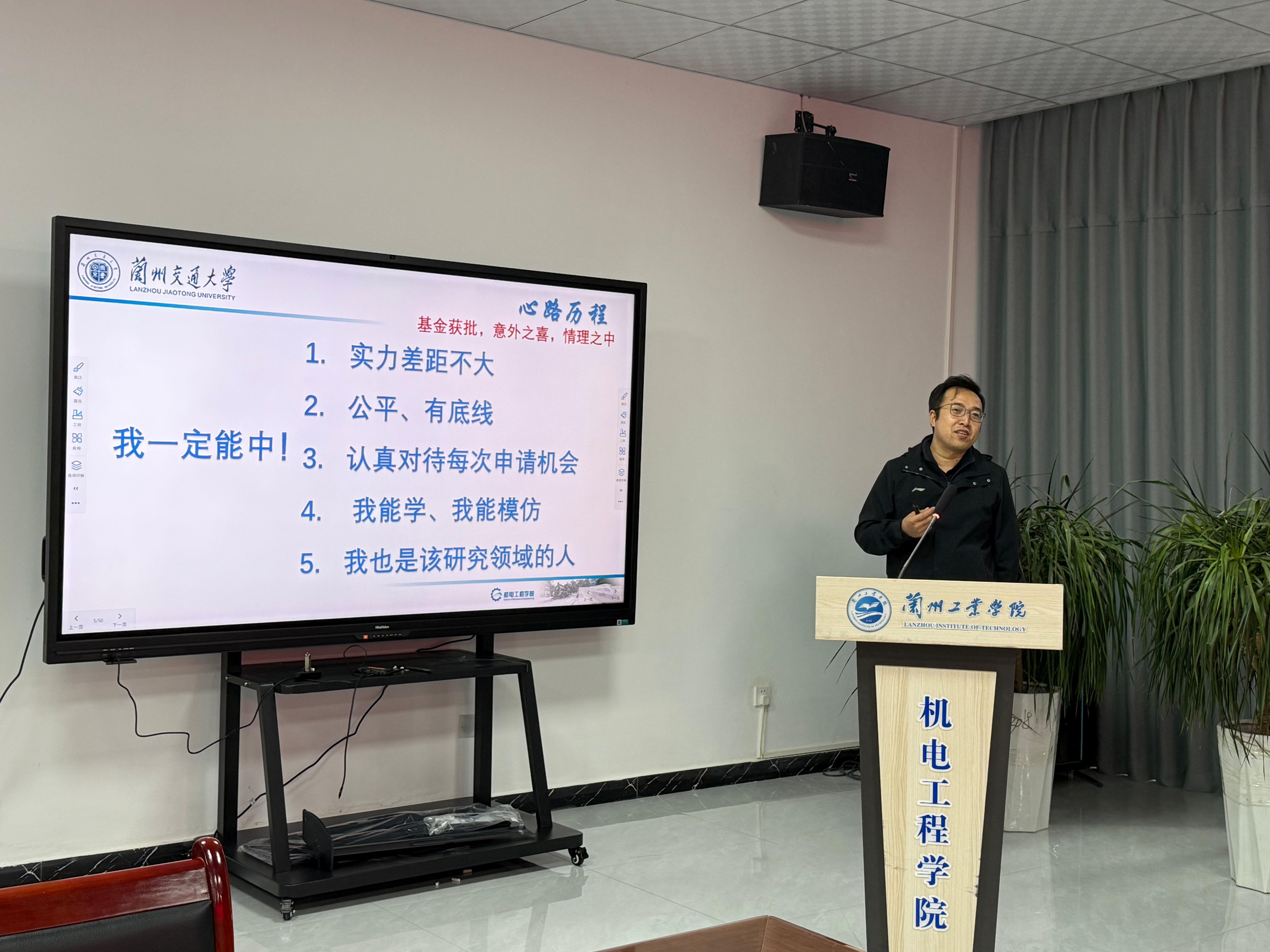 2025年10月28日,在南理工楼A308会议室举行“国家自然科学基金申报经验分享”专题学术报告会。本次报告会特邀兰州交通大学孟佳东副教授主讲,由机电工程学院院长林小军教授主持,学院20余名骨干教师、青年教师及博士参会。