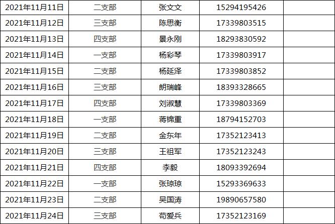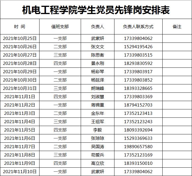 机电工程学院学生党员先锋岗安排表