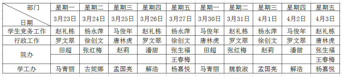 1、学院行政管理人员3月9日起正常上班,教学岗教师根据评建工作任务情况实行错峰式返校,实行错时轮流上下班与网上办公相结合的方式办公或教学。学生返校前教职工上班实行朝九晚五工作制,即早上9:00上班,下午5:00下班。