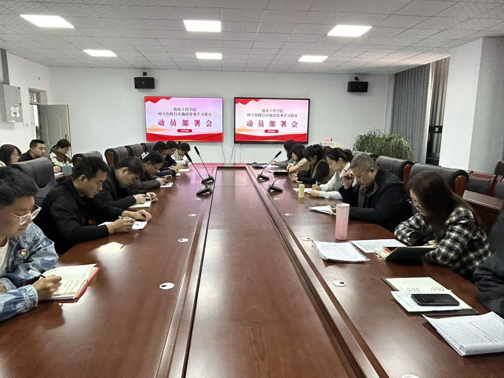 会上宣读了《机电工程学院树立和践行正确政绩观学习教育方案》。会议指出,要精准把握学习教育目标任务,聚焦核心要求、务求工作实效,依托党委理论学习中心组、“三会一课”、主题党日等载体,统筹开展学习研讨、专题党课、实地研学、专家辅导等系列活动,推动学习教育走深走实。引导全体师生党员深刻领会“政绩为谁而树、树什么样的政绩、靠什么树政绩”核心要义,把学习成效与学院教学科研、人才培养、服务地方经济社会发展等中心工作紧密结合,坚决纠治形式主义,一体推进“学、查、改、立”各项工作,确保7月底前取得扎实成效,以正确政绩观引领学院高质量发展。