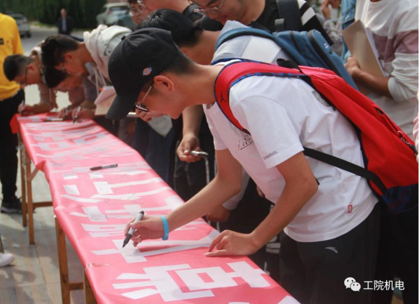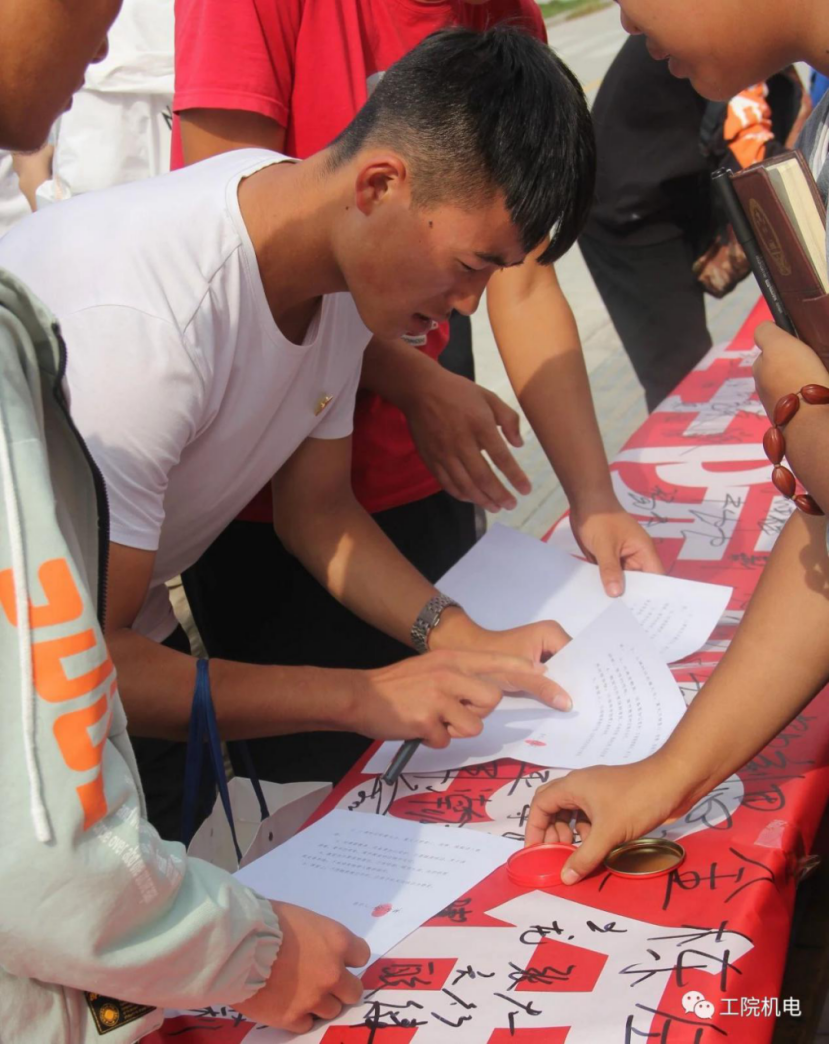 为全面提升全院大学生的文明素养,培养文明行为习惯,促进课堂良好风气的形成,营造崇尚文明,追求卓越的良好风尚。在我院学生会的组织下,我院19级全体新生于2019年9月24日,在南校区图书馆前,签订了“课堂文明在行动”倡议书。