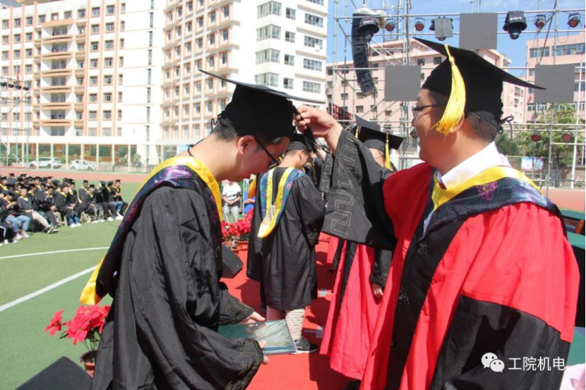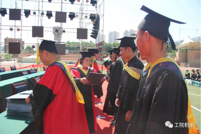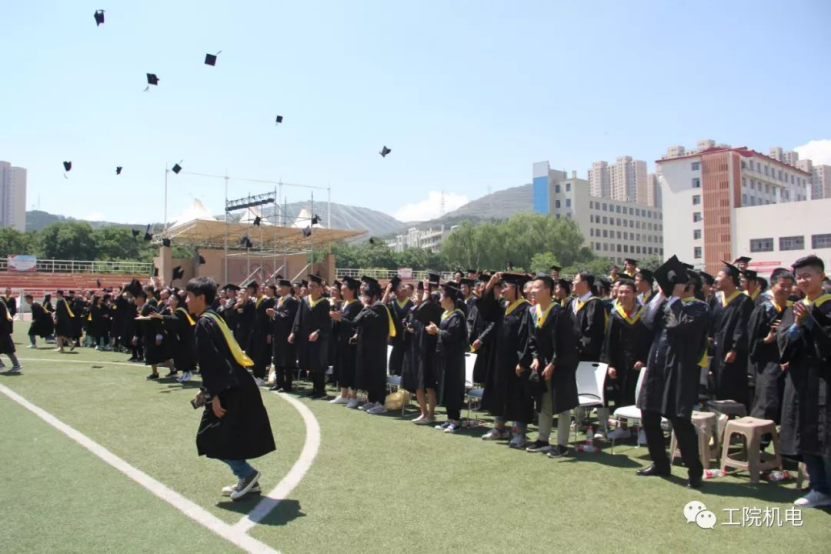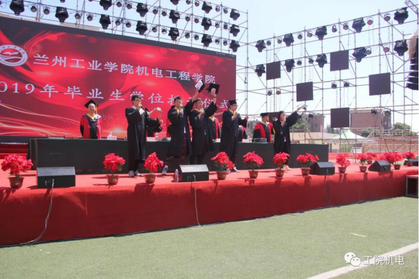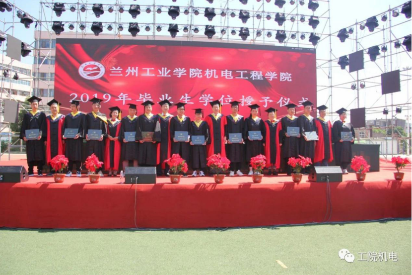 兰州工业学院机电工程学院2019年毕业生学位授予仪式于今天上午在南校足球场举行。