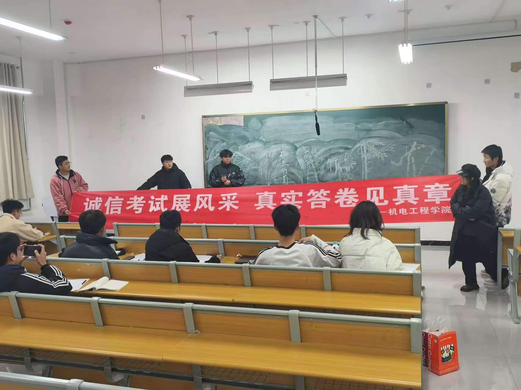 诚信考试是对自己学习成果的真实检验,也是个人品质的体现,在考试中坚守诚信有助于培养正直的人格,12月24号晚自习期间机电工程学院各班积极开展了关于诚信考试的主题班会。